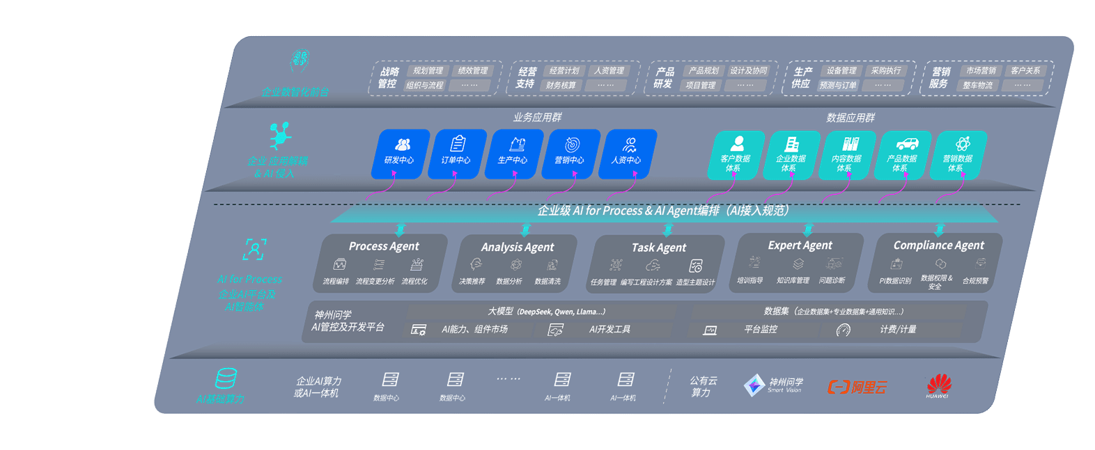 意昂4问学智车解决方案是一套基于AI技术的汽车行业智能化系统,,,,覆盖从底层算力到顶层AI应用的全栈方案。。。。方案由算力层、、模型层和应用层组成:算力层,,,,方案支持多种一体机配置,,,,具备云端灵活部署、、、、多云适配以及动态优化计算资源的能力;模型层,,意昂4问学平台版提供了企业级AI应用一站式构建与管理平台,,,支持基于后训练强化技术的汽车企业专属模型的训练、、、、评测和运营;应用层,,,意昂4问学DeepSeek版提供包括超级员工、、、智能招采、、、、智能营销、、智能客服、、AI for BI等一系列解决方案,,,可助力汽车行业实现数字化转型,,,让管理更智能、、响应更敏捷。。。